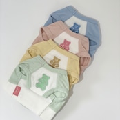 フロントのベア刺繍と、優しい色合いが愛らしい一枚です♪