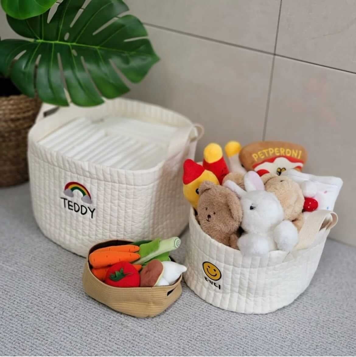 【予約】ネーム入りバスケット オーダーメイド おもちゃ入れ プレゼント