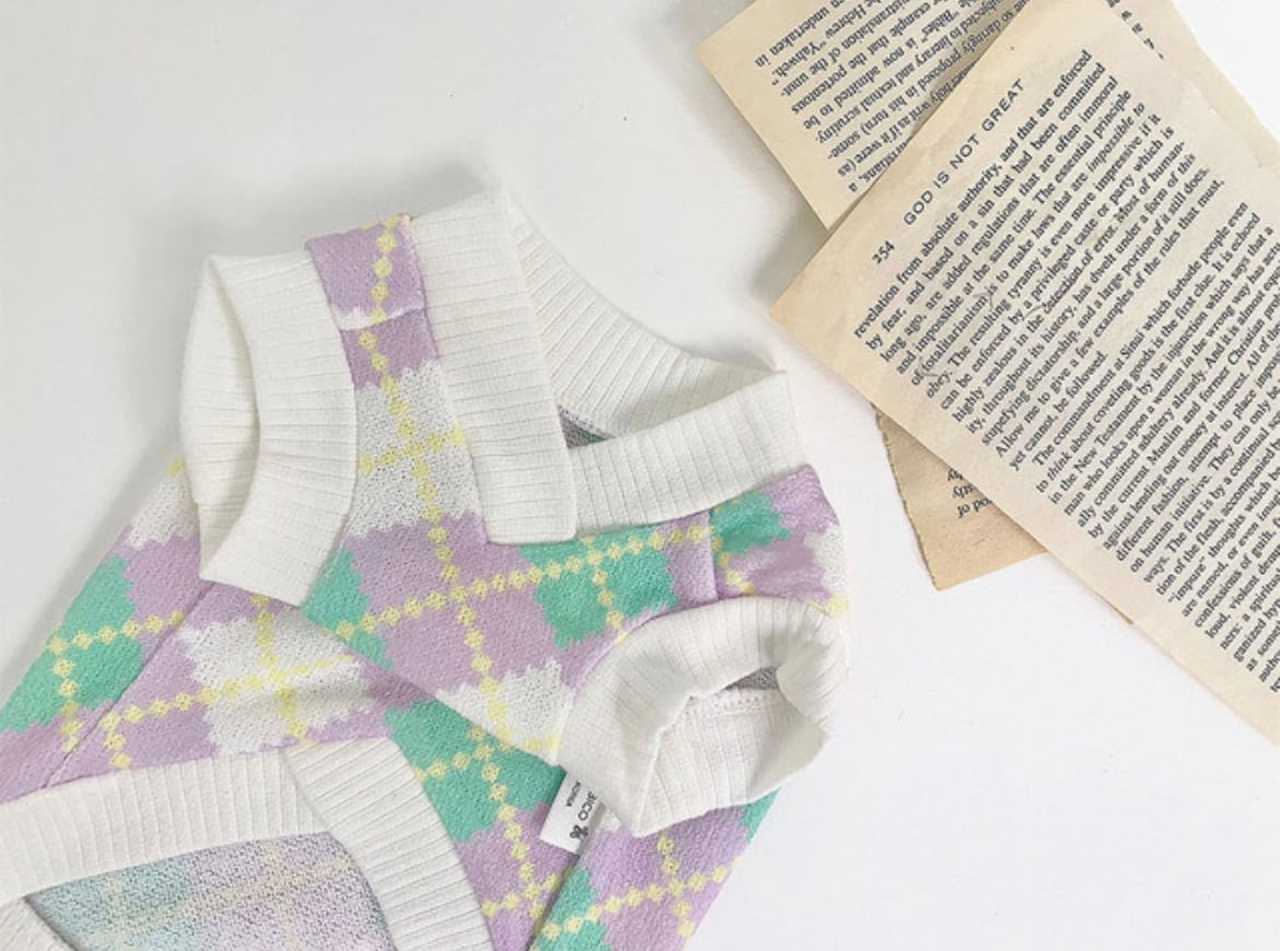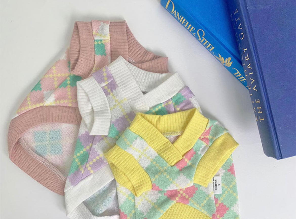 パステルカラーの組み合わせが可愛いアーガイル柄の春ニット。