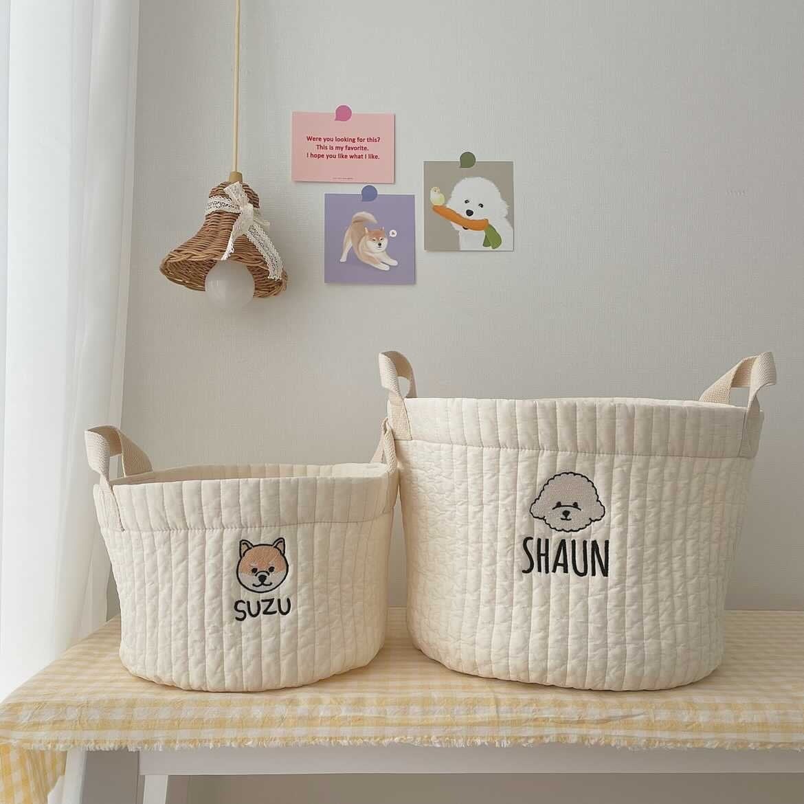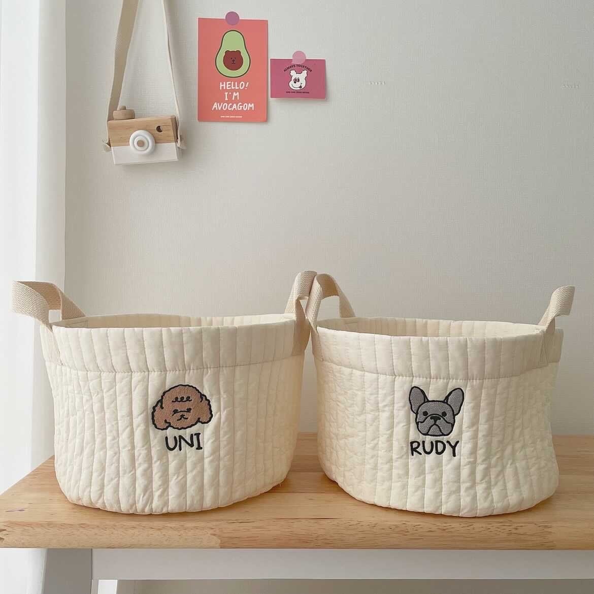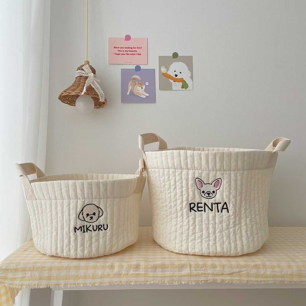 大人気!韓国のハンドメイド作家さんによる"ネーム入りバスケット"にわんちゃんのお顔刺繍ができるようになりました。