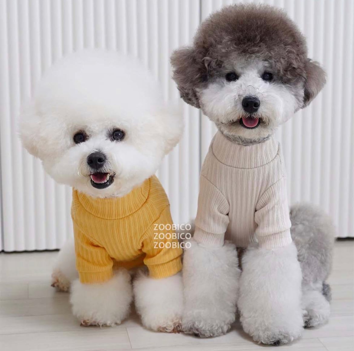 【即納】【予約】リブタートルネックTシャツ 韓国犬服