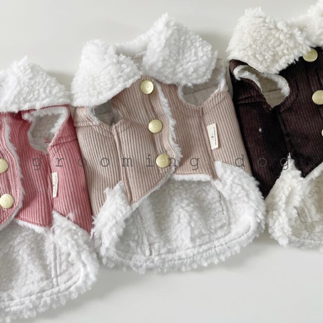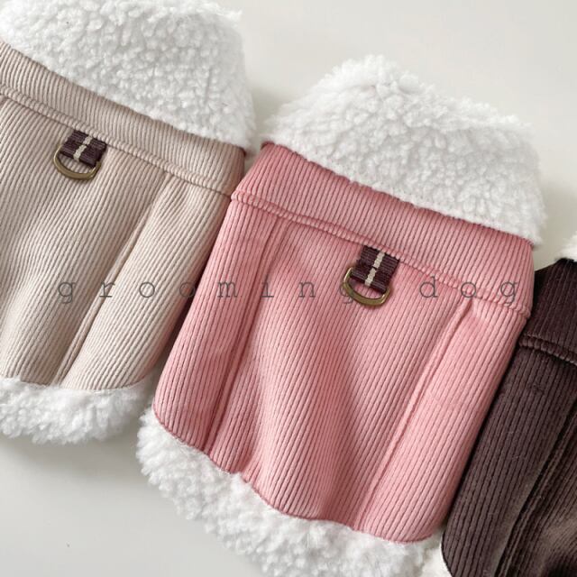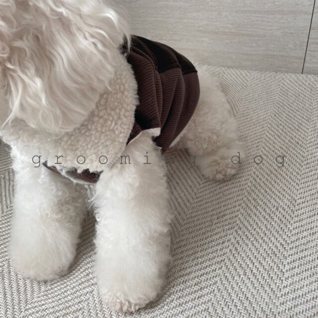 【即納】コーデュロイハーネスムートンコート 韓国犬服